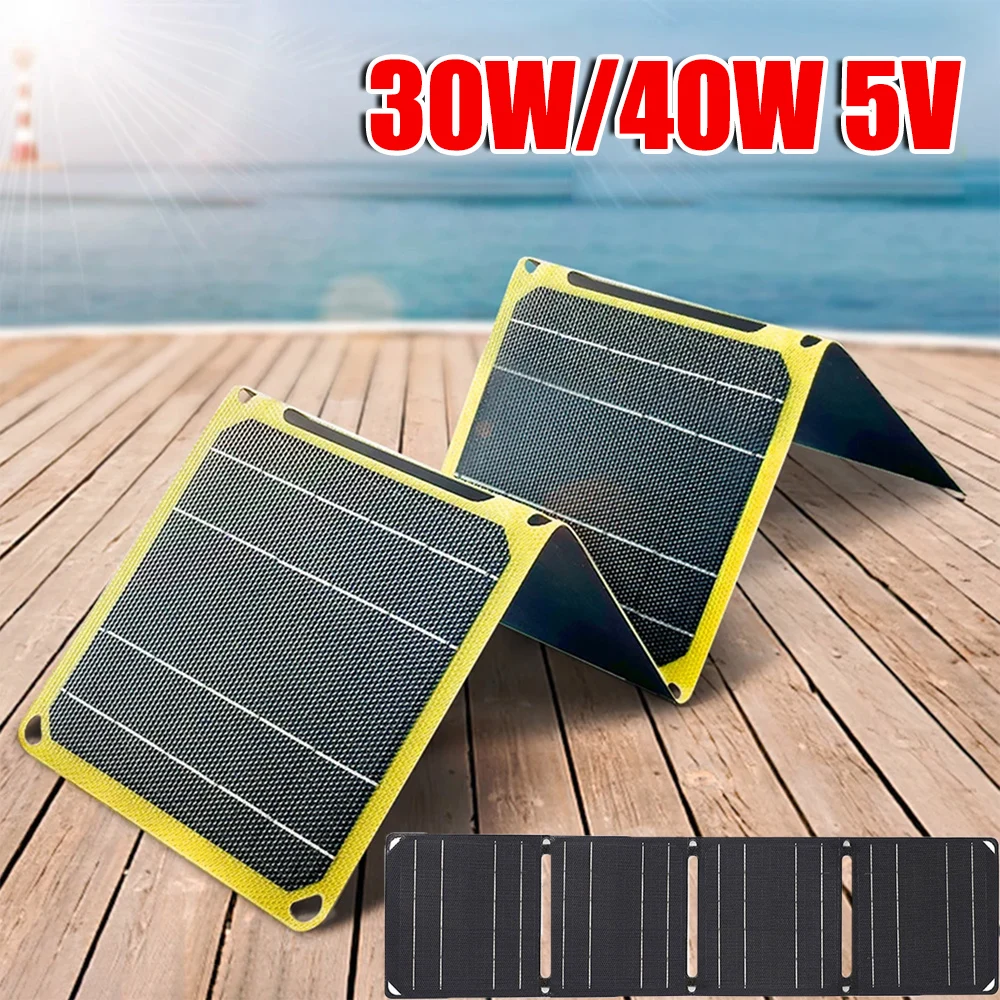 Outdoor Powerful Portable Solar Panel ​30W/40W 5V Foldable Phone Charger IP67 Waterproof ETFE Panels Mobile Power Bank Charger