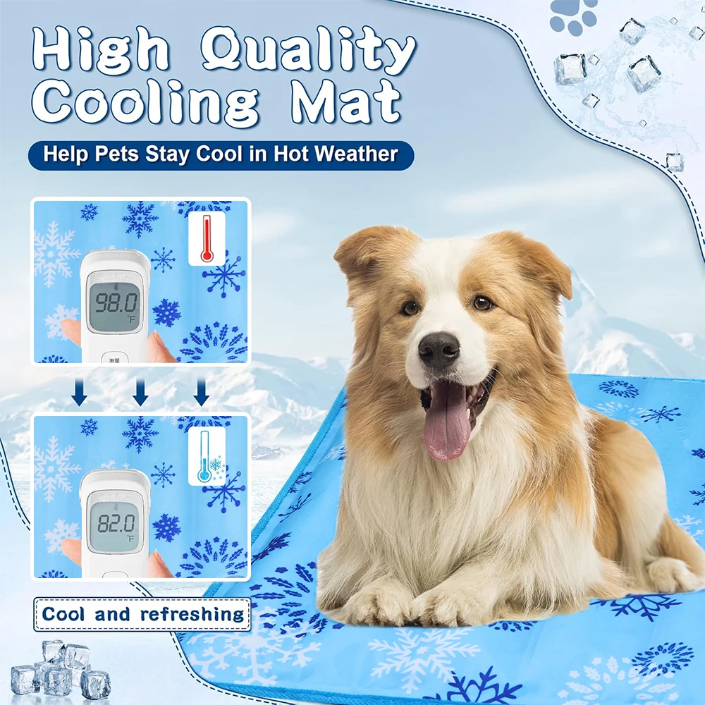 This cooling mat is made from natural cooling fabric, lowering temperatures by 5-10°C (9-18°F) to effectively prevent pets from overheating or dehydration. Perfect for hot weather and outdoor activities, it provides long-lasting cooling wherever your pet rests. Avoid direct sunlight to maintain its performance, making it the ideal solution for high summer temperatures.