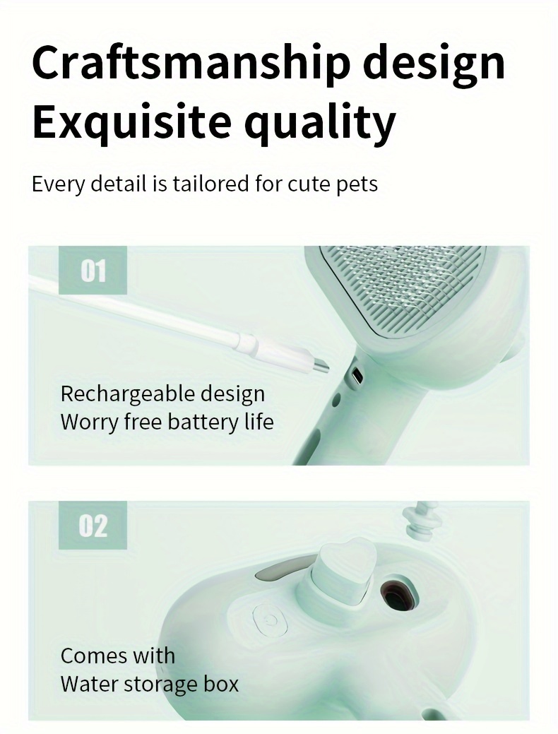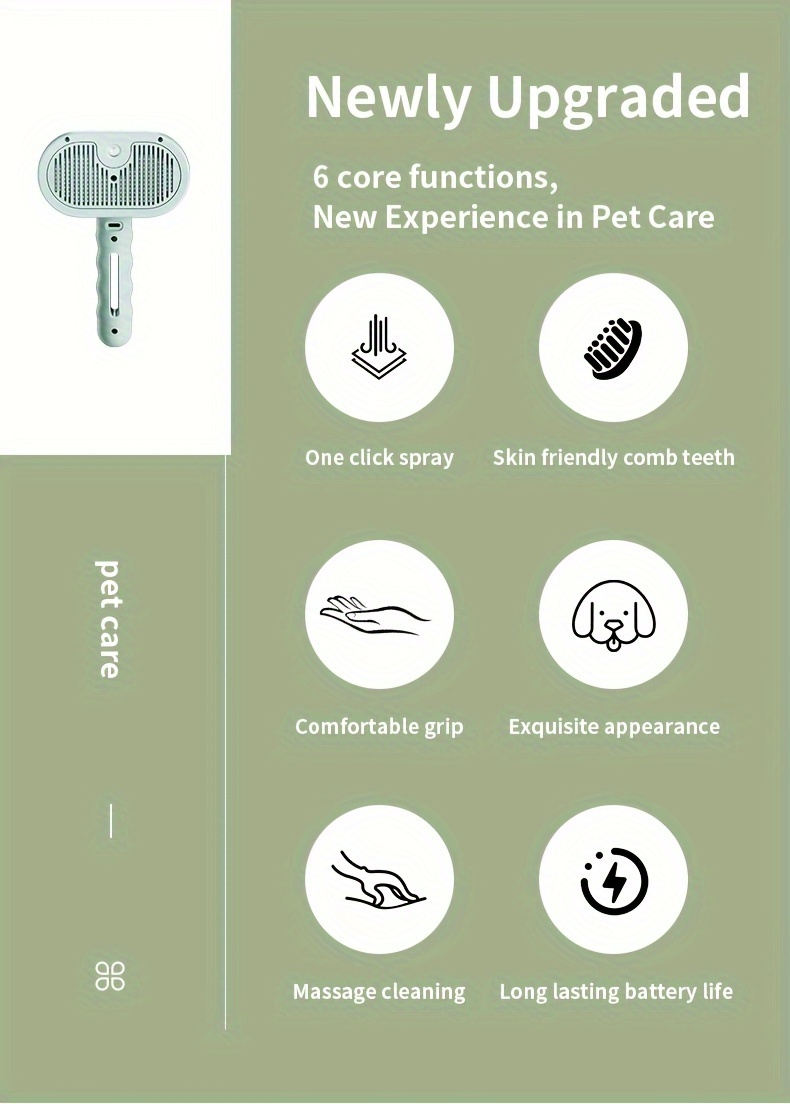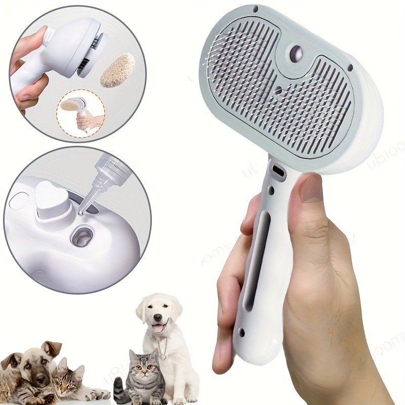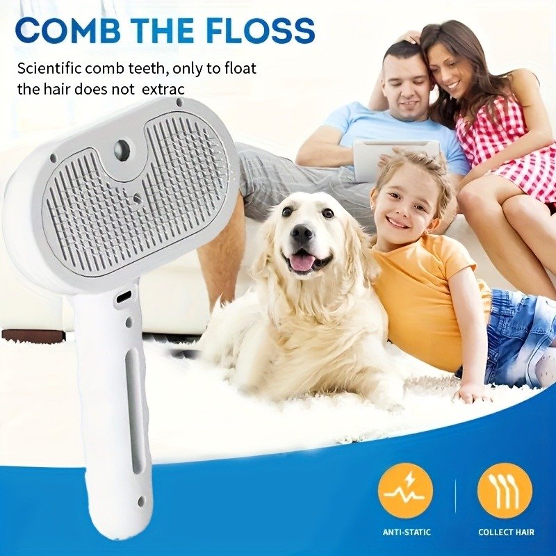 Rechargeable Steam Pet Brush – Multifunctional Dog and Cat Massage Bath Tool, Cleaning Steam Comb with Massage Function, Battery Powered, Plastic Material – Gentle Hair Removal and Detangling Brush, Easy-to-Clean Pet Grooming Brush, Self-Cleaning Pet Fur