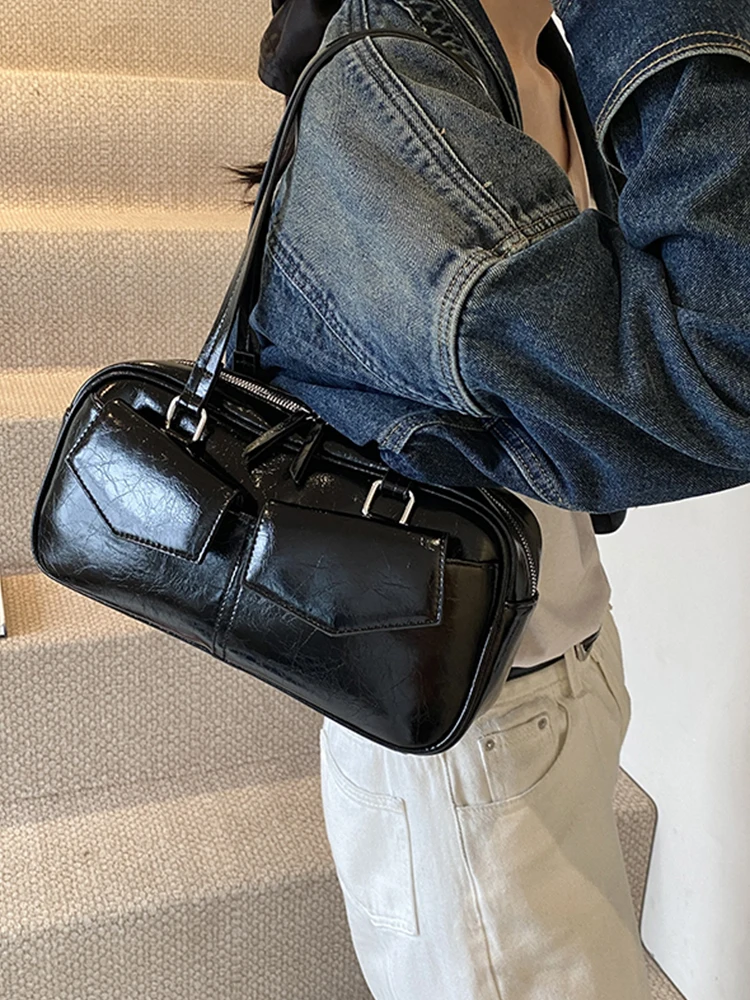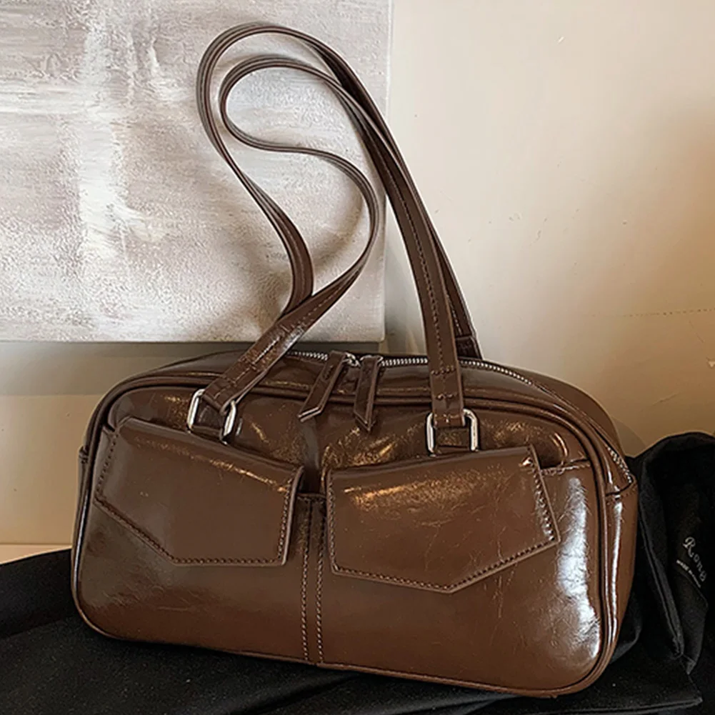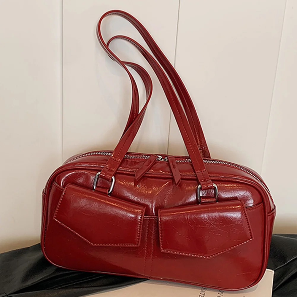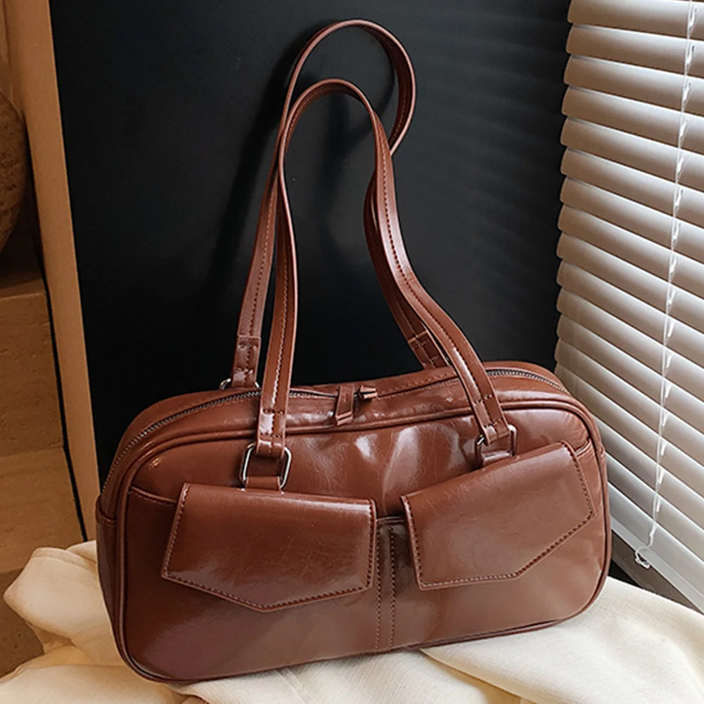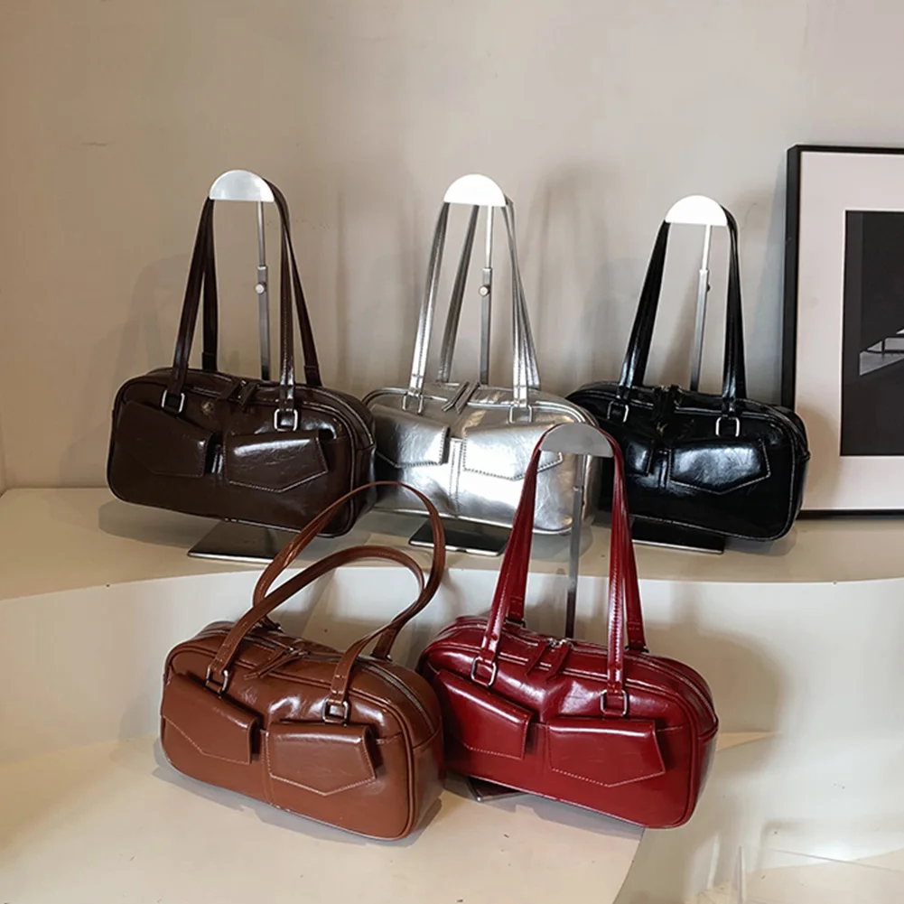 Small Shoulder Bags for Women Fashion Trend Underarm Bag PU Leather Shoulder Underarm Bag Multi Pockets Solid Vintage Business Bags