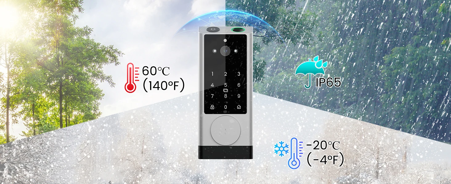 [Provide Security Protection] Six unlocking methods: fingerprint recognition, password, IC card, key (provided with 2 IC cards and 2 keys), unlock the smart lock via smartphone,voice control your door lock through Alexa and Google Assistant. 100 fingerprint capacity, recognition takes only 0.25 seconds. The IP65 waterproof design ensures that it can work properly in all weather conditions. The automatic lock and temporary password functions add peace of mind to your life.