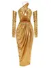 SS2354 Night Dress Sexy Long Shiny Evening Dresses Halter Neck Dress Women Sexy Club Wear Two Piece Set