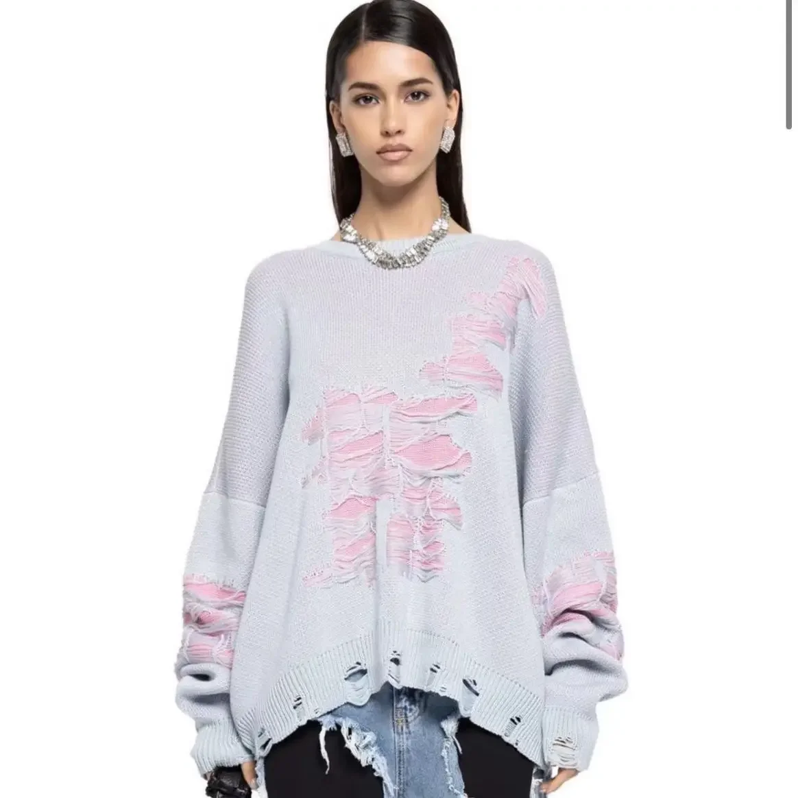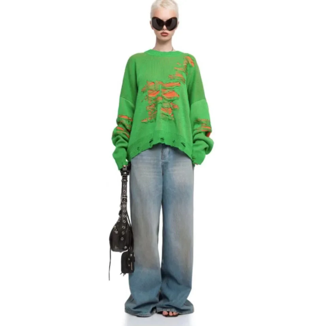 Be the first to review “Sweater Women Autumn Personality Street Distressed Sweater Women’s Round Neck Drop Shoulder Sleeve Tops Jumper Pullover Sweater”