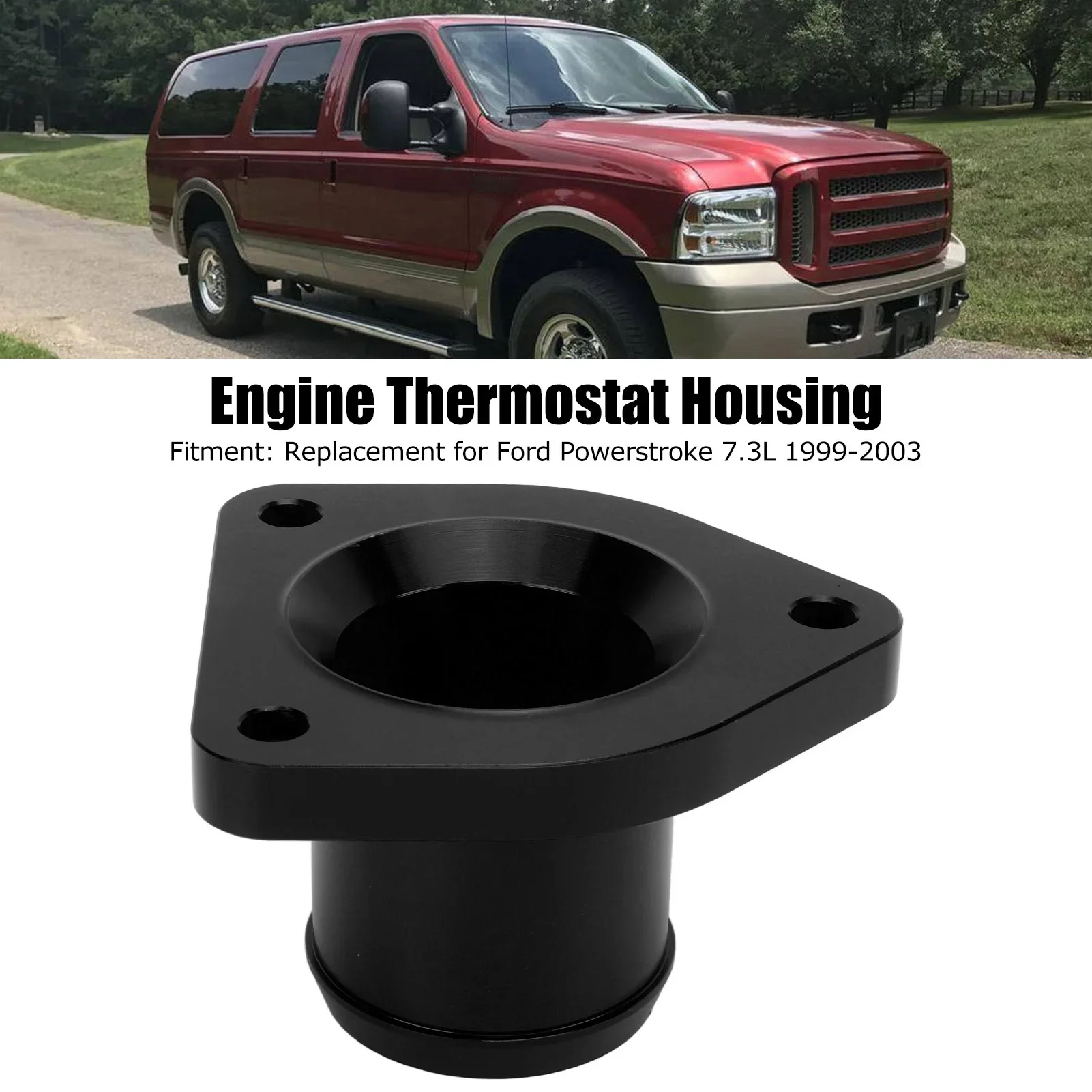 | Features | 1、Fitment: Built to original specifications and standard, engine thermostat housing is a good replacement for Ford Powerstroke 7.3L 1999‑2003. 2、Durable Material: Thermostat housing is constructed from forged 6061‑T6 aluminum alloy, CNC precise machined for a perfect fit, durable and long lasting. 3、Leakproof Ring: High quality billet aluminum thermostat housing comes with a leak proof seal to ensure that your thermostat keeps operating without any leaks. 4、Ideal Replacement: Exquisite and careful workmanship, practical, can directly replace the broken or shabby thermostat housing, can be used for a long time. 5、Easy Operation: Comes with 3pcs necessary bolts, you can quickly and easily replace cheap OEM thermostat housing, high quality, worth your trust. |