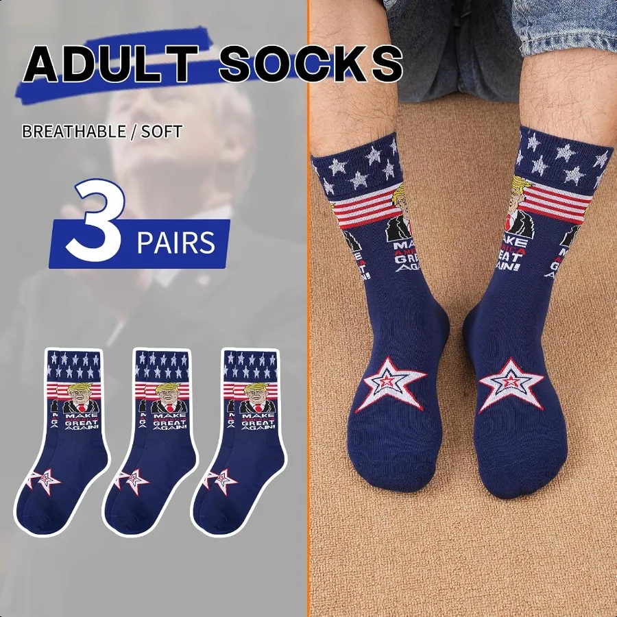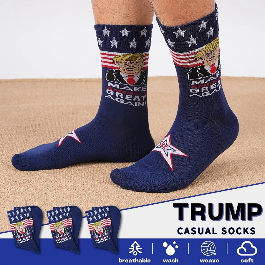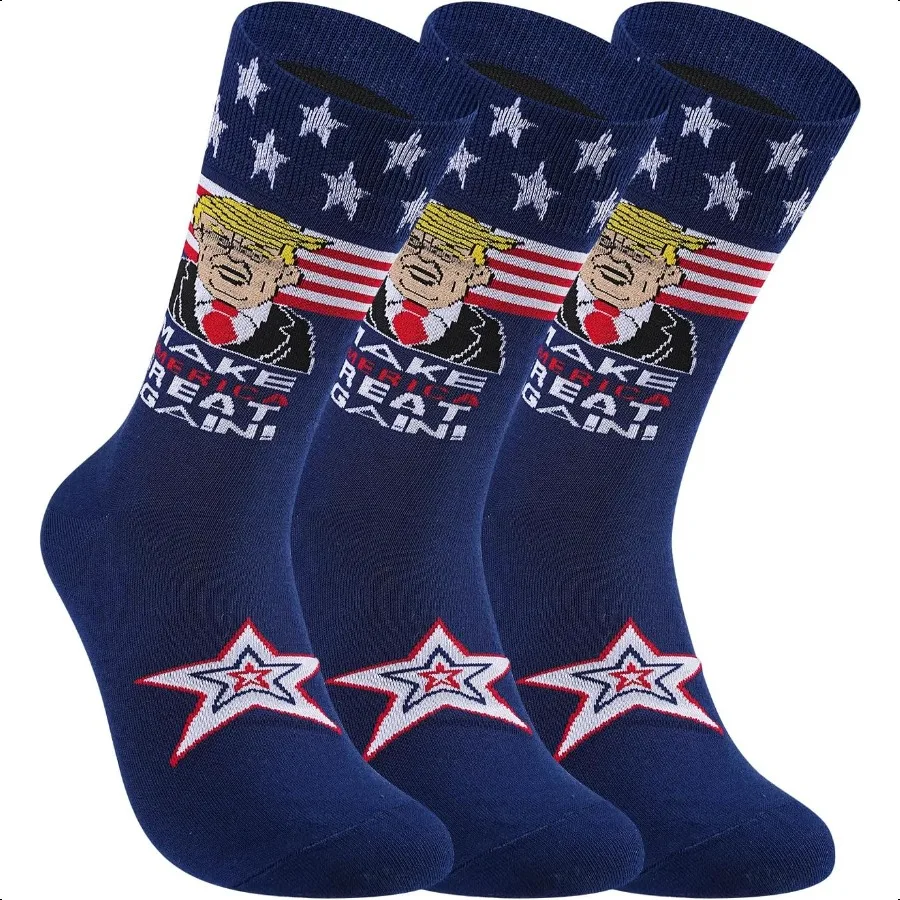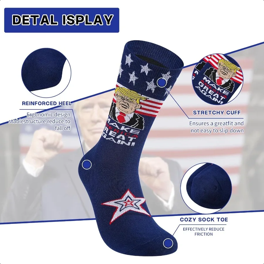 Trump 2024 Election Socks Patriotic Stars and Stripes Conservative Rally and Xmas Stocking Gifts for Adult Christmas