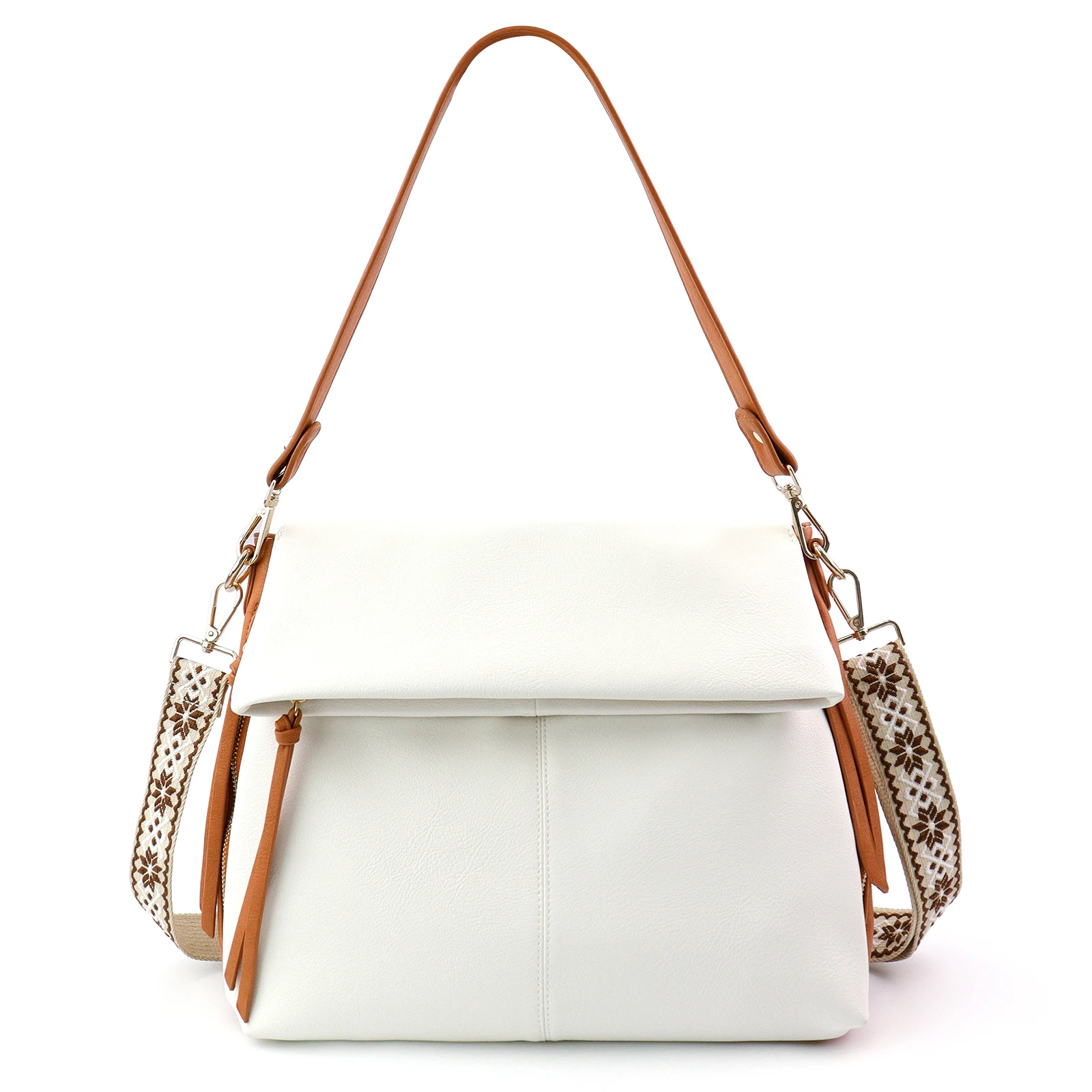 Unique Designs: The vegan leather crossbody bag has a unique flip-top design, which gives it a vintage and western style. The Double strap design with leather handle strap and canvas shoulder strap makes this bag has two ways to carry: It can be used as a crossbody bag or as a shoulder bag, which is very convenient and practical.