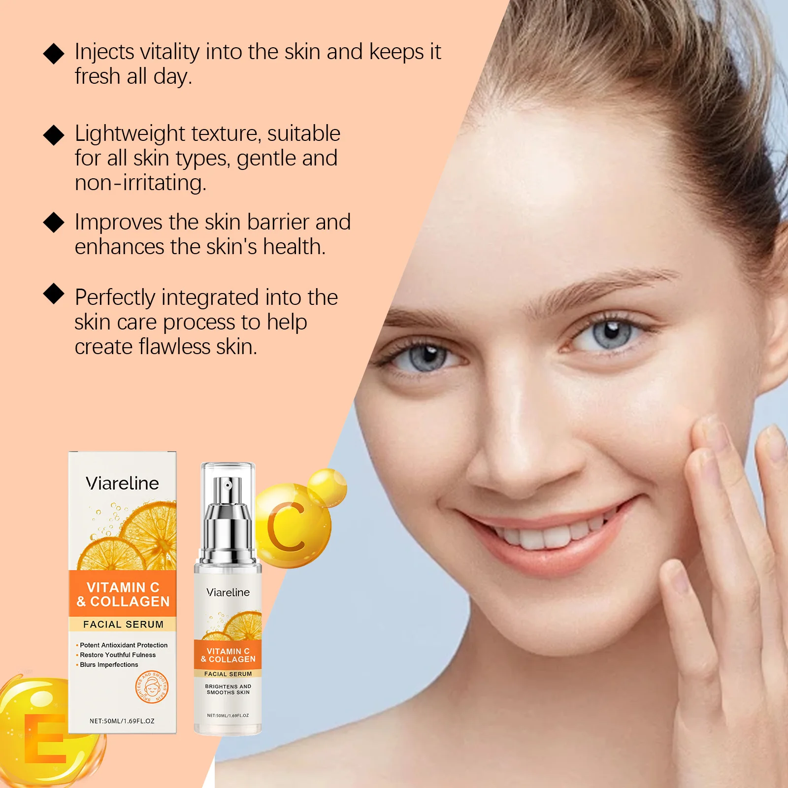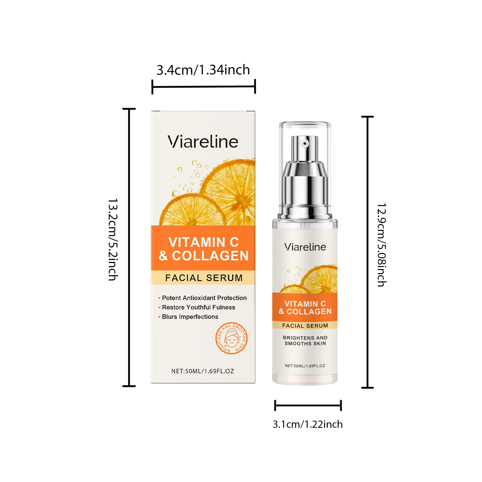 Viareline Vitamin C Face Serum Relief Fatigue Smoothing Brightening Skin Tone Moisturizing Improve Dullness Face Skin Serum