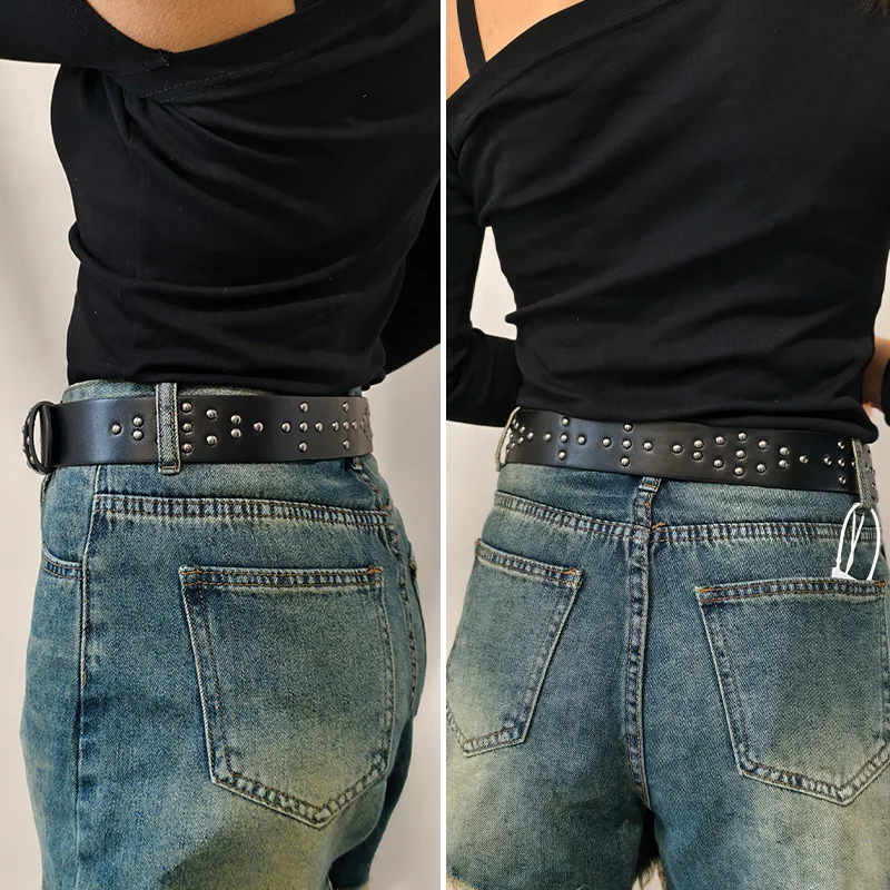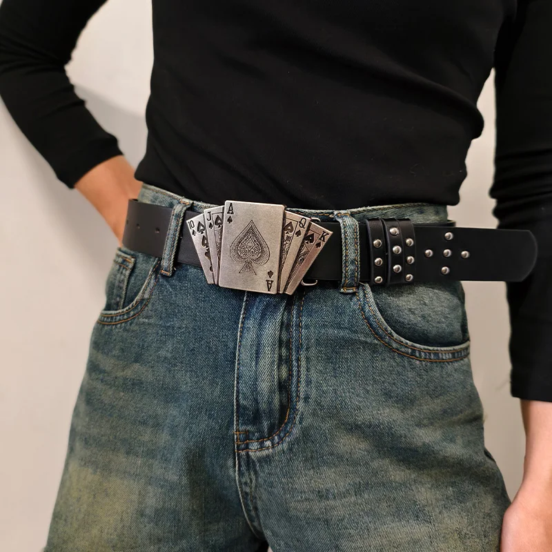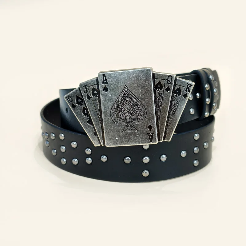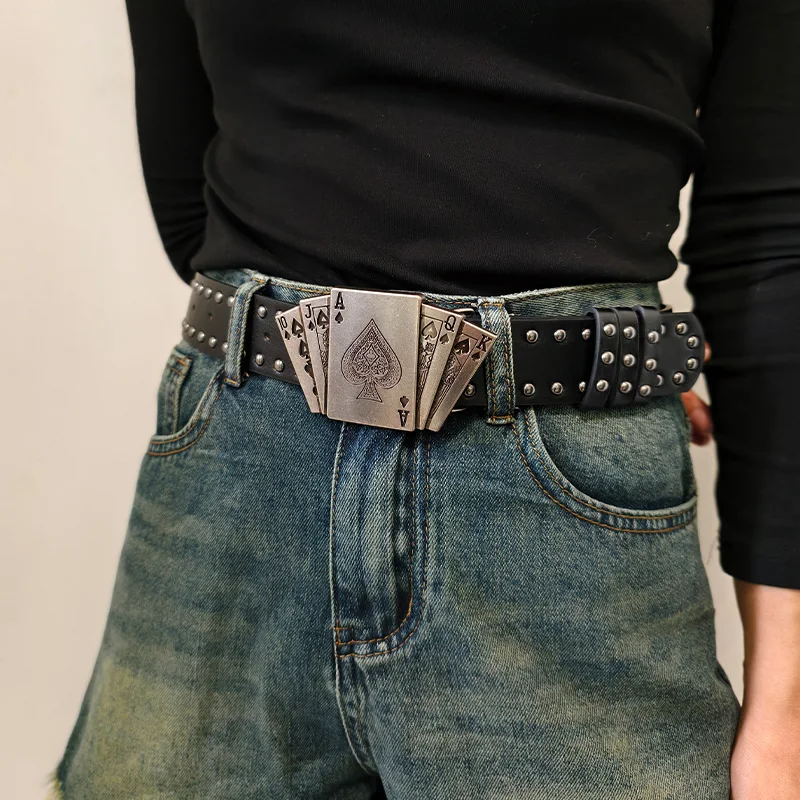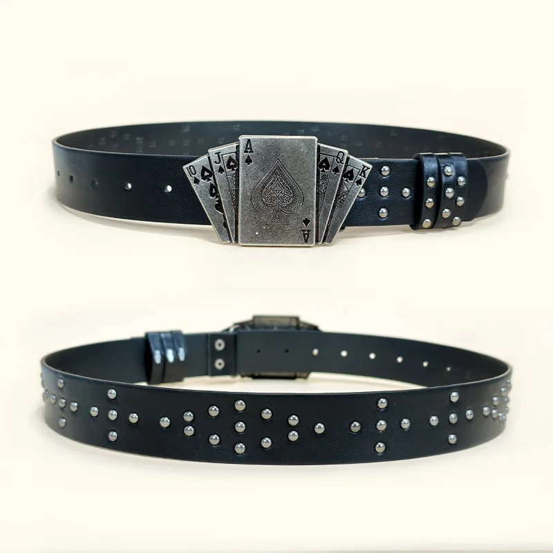 Western Black Belt for Men and Women Poker Rivet Belts Male Fashion Leisure Punk Accessories wide Jeans Waistband Men's Gifts