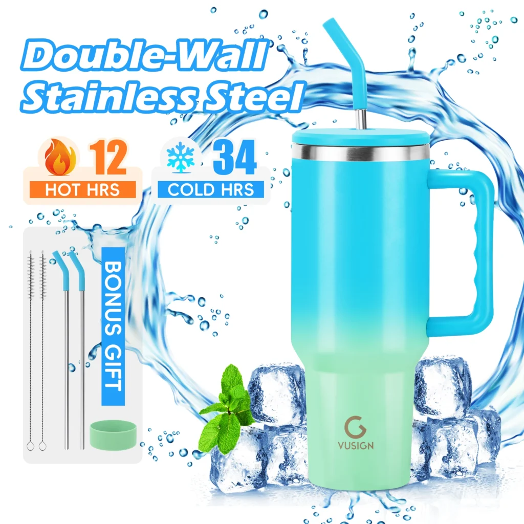 40oz Insulated Gradient Tumbler Leak Proof Reusable Travel Mug Stainless Steel Thermal Water Tumbler Cup for Cold Hot Beverages