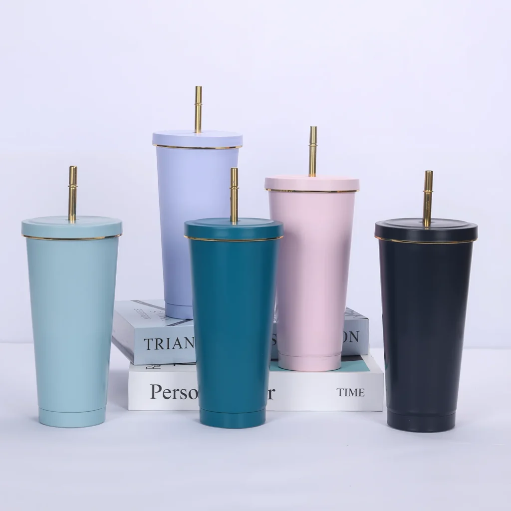 20 oz Double Wall Stainless Steel Tumbler with Straw Lid Pink