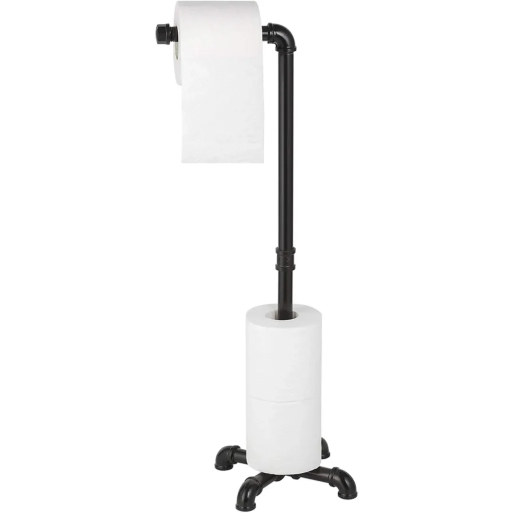 Heavy Duty Freestanding Toilet Paper Holder | Industrial Bathroom Tissue Roll Dispenser Stand with Base, Black