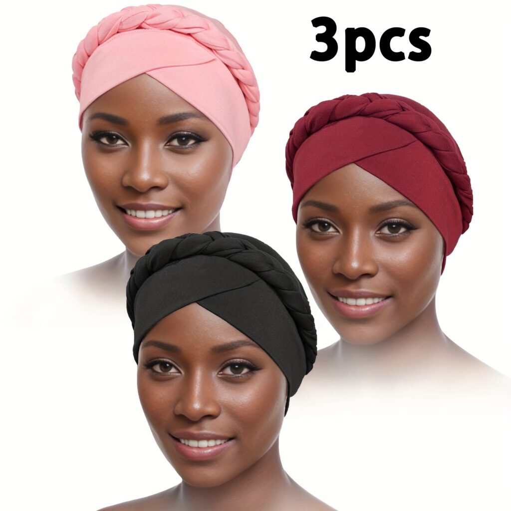 3pcs/set Vintage Braided Boho Head Wraps – Elastic and Breathable Forehead Turban Hats for Women – Perfect for Ramadan, Chemo, and Everyday Wear