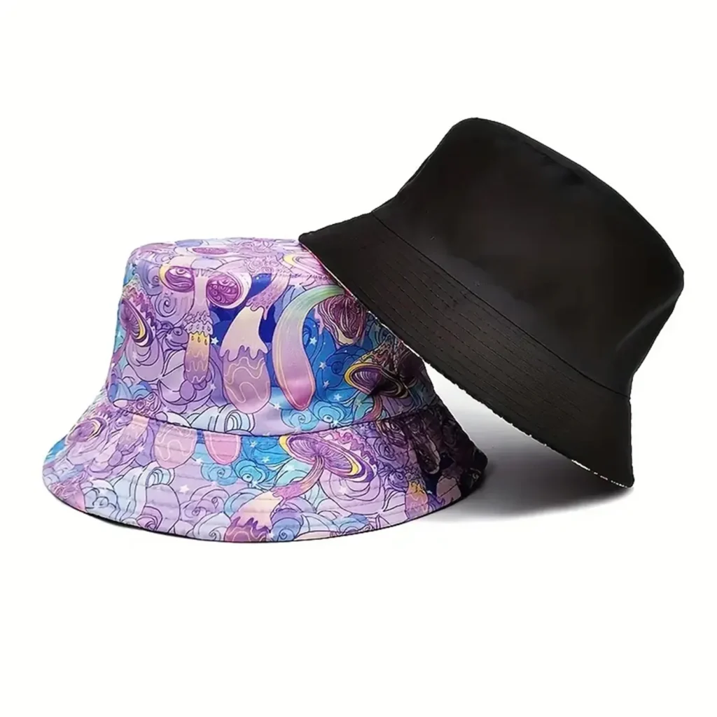 Fashion Bucket Hats for women Double Side Mushroom Design Summer Hats Outdoor Breathable Summer cap for Camping Traveling